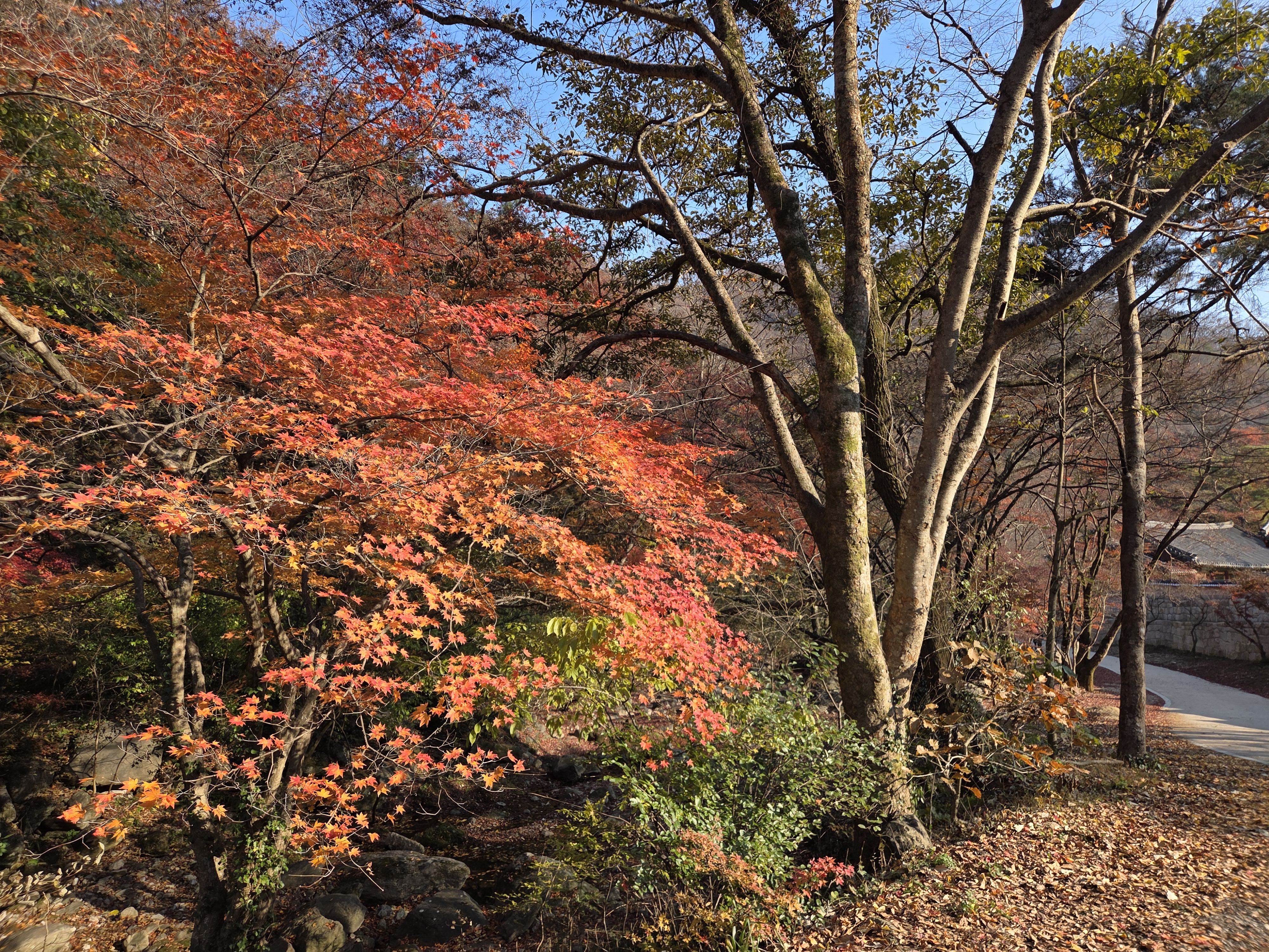 - 약사암 주변은 단풍 절정으로 물들어 있고, 백양사 주변은 단풍이 거의 끝나가고 있어...
