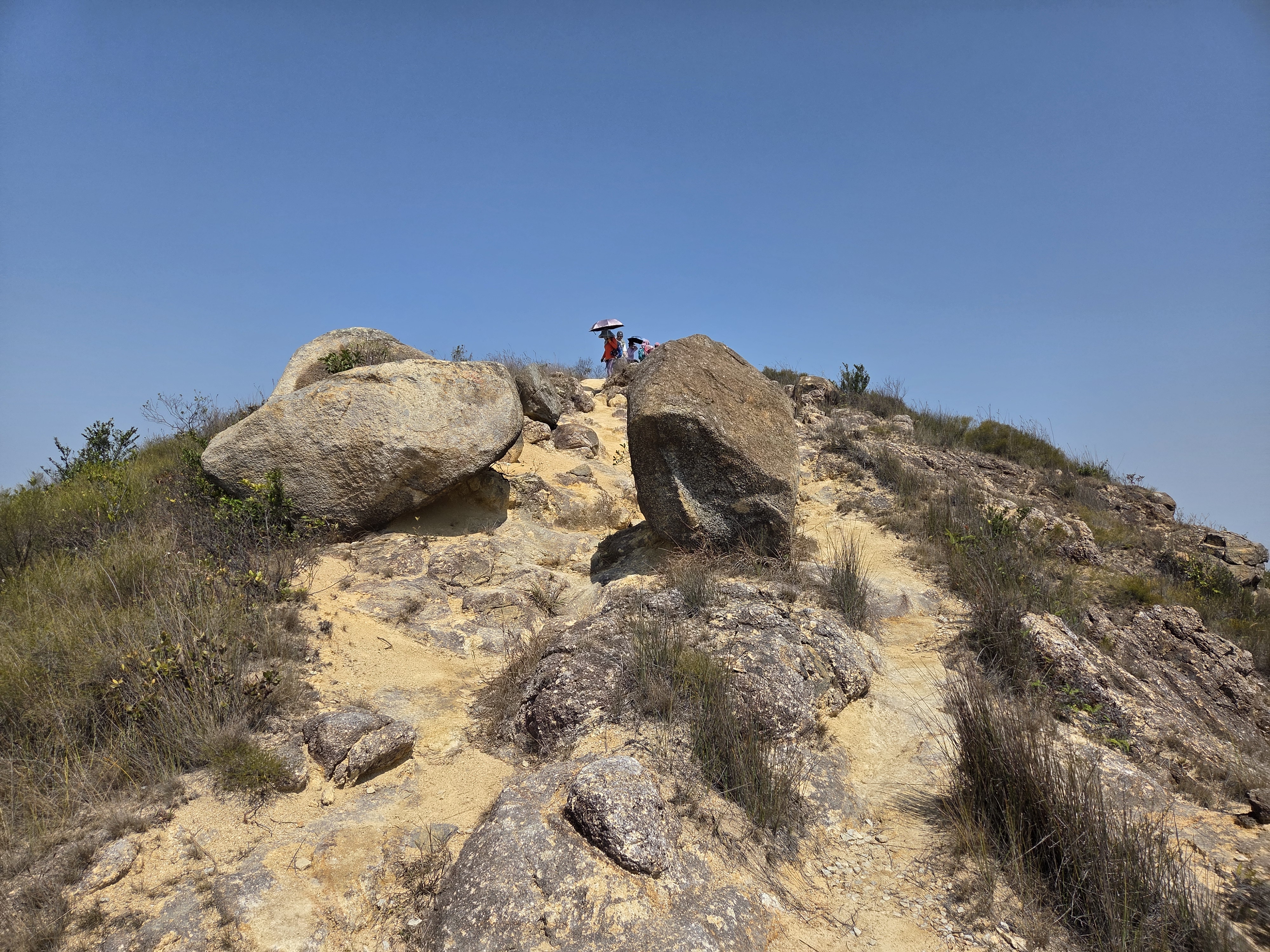 - 정오 넘어가니 날씨 덥고, 등산로에 햇빛을 피해 쉴만한 큰나무가 거의 없어 힘이 쪽