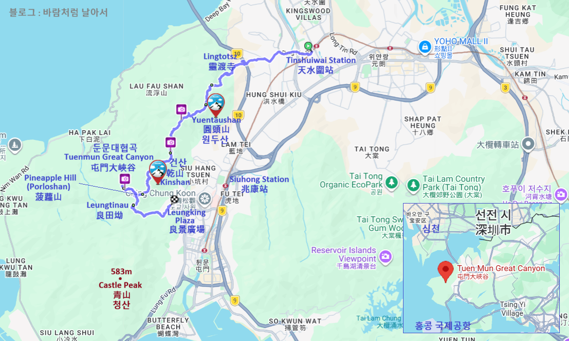 [ 원두산(圓頭山/Yuentaushan) & 둔문(屯門/Tuenmun) 대협곡 등산지도 ]